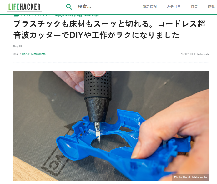 皆様、こんばんは!Brightチームです。10月03日、Lifehackerで「Hanboost Cutter C1 第3弾」を紹介して頂きました。話題:プラスチックも床材もスーッと切れる。コードレス超音波カッターでDIYや工作がラクになりました興味がある方、是非下記のリンクからアクセスしてみてください。https://www.lifehacker.jp/article/machi-ya-hanboost-review-874343/【レビューの一部抜粋】〈硬い素材もスーッと切れて快感まずは何より超音波による切れ味が知りたいので、さっそく最高出力(レベル3)でダンボールからトライ。電源OFFだと一般的なカッターのようにグッと力を入れないと刃が進みませんが、電源が入るやいなや軽い力でスッーと刃が進んでいきます。破壊力というか威力のある工具はオモチャみたいな感覚で楽しくなりますね。軽工作などでよく利用されるプラパイプ。軽く刃を当てているだけで自然と切れ、切断面も潰れずキレイなまま。ちなみに、超音波切断は素材によって摩擦熱で溶ける場合もある点にはご注意を。溶解が気になる場合は出力を落とすか接触時間を短くするようにしましょう。通常カッターでは何回も往復が必要なPVCフロアタイルもご覧の通り。擬音を付けるなら“にゅ〜”という感じで切れてくれたので、インテリアのDIYでも活躍できますね。すでに複雑な造形になっているプラモ等の肉抜きやカスタムにも。本体はちょっと太めですがペンと同じ持ち方で使えるので、細かい部分の操作性も悪くなかったです。〉ご興味のある方はこの機会をお見逃しなく!https://camp-fire.jp/projects/874343/view10月31日まで販売期間は続きますので、ぜひSNSでのシェアや身近な方にもおすすめしていただけると嬉しく思います。#hanboost #brightdiyどうぞよろしくお願い致します。BRIGHT チーム