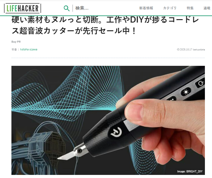 皆様、こんばんは!Brightチームです。10月08日、Gizmodoで「Hanboost Cutter C1 第3弾」を紹介して頂きました。話題:プラモや樹脂タイルもスーッと切れる。コードレス超音波カッターは工作やDIYが捗るガジェットでした興味がある方、是非下記のリンクからアクセスしてみてください。https://www.gizmodo.jp/2025/10/machi-ya-hanboost-review-874343.html【レビューの一部抜粋】〈コードが邪魔にならず快適ここまでいくつかの素材をカットしましたが、コードレスで線を意識せず使えるのも「Hanboost C1」の快適ポイントだと思いました。操作系もシンプル。超音波の強度は3段階で調整可能ですが、使ってみた感想としては基本は最大のレベル3で良さそう。レベル1〜2は柔らかめの素材や熱で溶ける場合用ですね。〉ご興味のある方はこの機会をお見逃しなく!https://camp-fire.jp/projects/874343/view10月31日まで販売期間は続きますので、ぜひSNSでのシェアや身近な方にもおすすめしていただけると嬉しく思います。#hanboost #brightdiyどうぞよろしくお願い致します。BRIGHT チーム