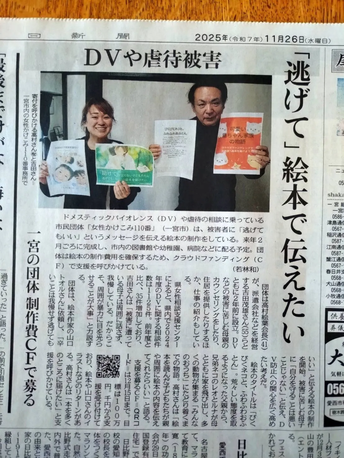 今回の絵本プロジェクトについて中日新聞が載せてくれました。