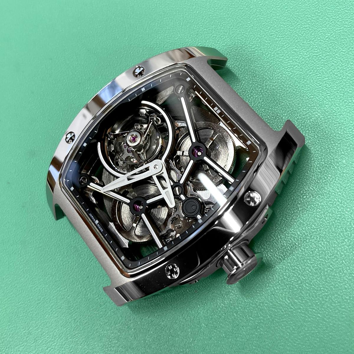 T10は、トノー型ZEROOトゥールビヨンTHE ARCHERとして初めて自動巻を採用。利便性と機構美を両立させた、新しい選択肢です。