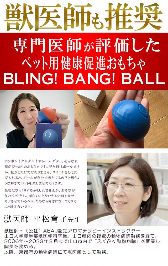 と心配するお声が思いのほか集まり、愛犬愛猫のストレスを思い切り解消できる商品を作りたい、という思いに駆られて開発したのが BLING! BANG!BALL です。