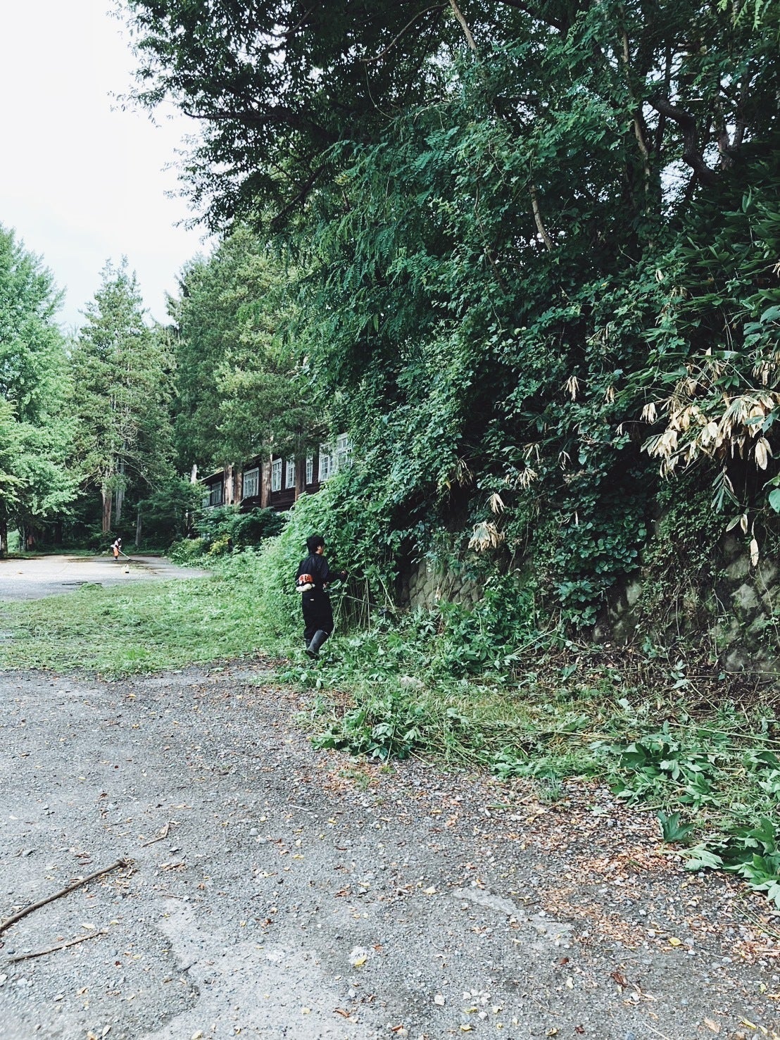 鬱蒼と茂る草をはらい、木を倒し、埋もれるゴミを掘り出していくと、校舎と広場に光が射し、古い礎石に風が抜けていきました。そしてそれは、作業をする私たちの顔や心もまた同様でした。