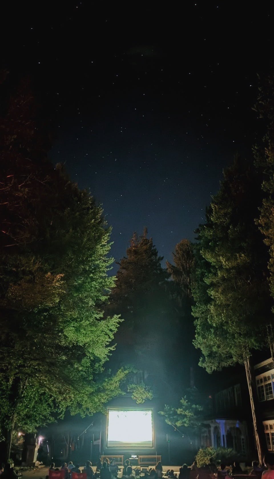 古い学び舎の佇む群青の森の広場に、映画の光を映して燦めくたくさんの瞳。
