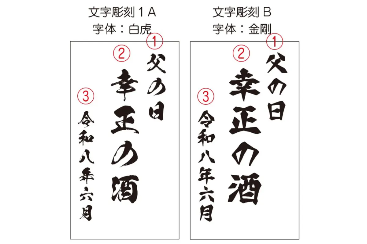 ※ご依頼の際は2つのフォントのどちらにするか、また①、②、③の文字をそれぞれお伝え下さい。①のみ、②のみも可能ですが金額は変わりませんことご了承ください。