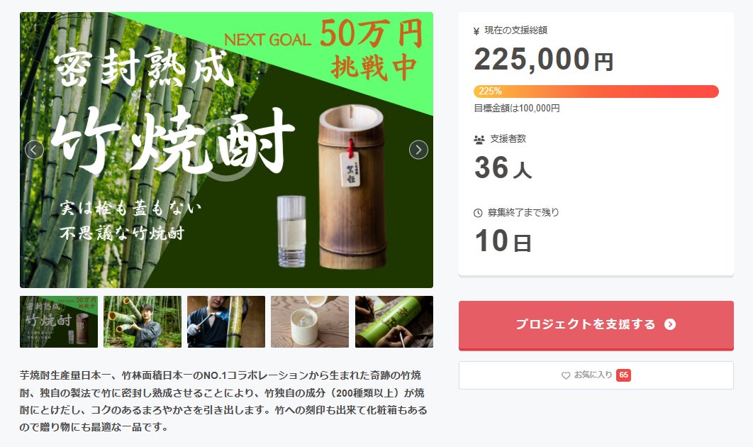 現在は皆様のおかげもあり竹林での竹筒制作や酒蔵との連携で商品つくりなど、各方面と調整を行っているところでございます。