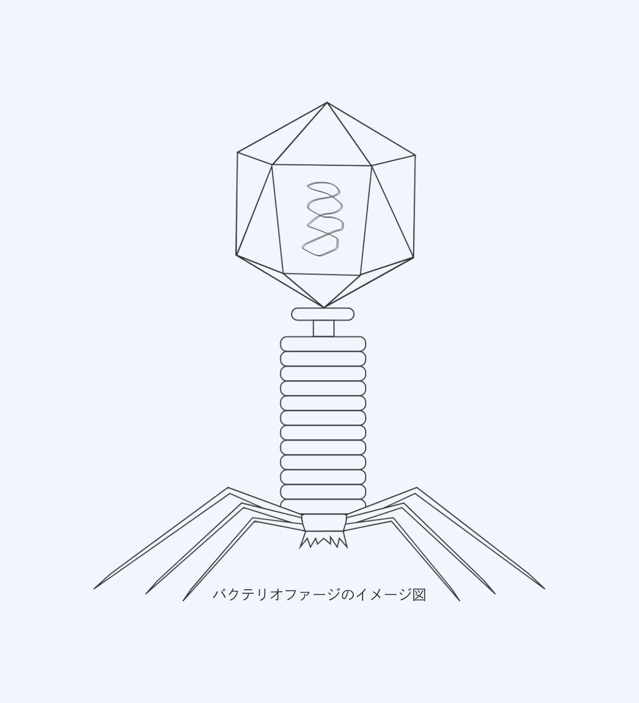 ロゴアイコンは、バクテリオファージの頭部構造を象徴する「六角形」をモチーフにしました。中央に光を加えることで、ファージの力を社会に広げ、未来に希望を届ける姿勢を表現しています。