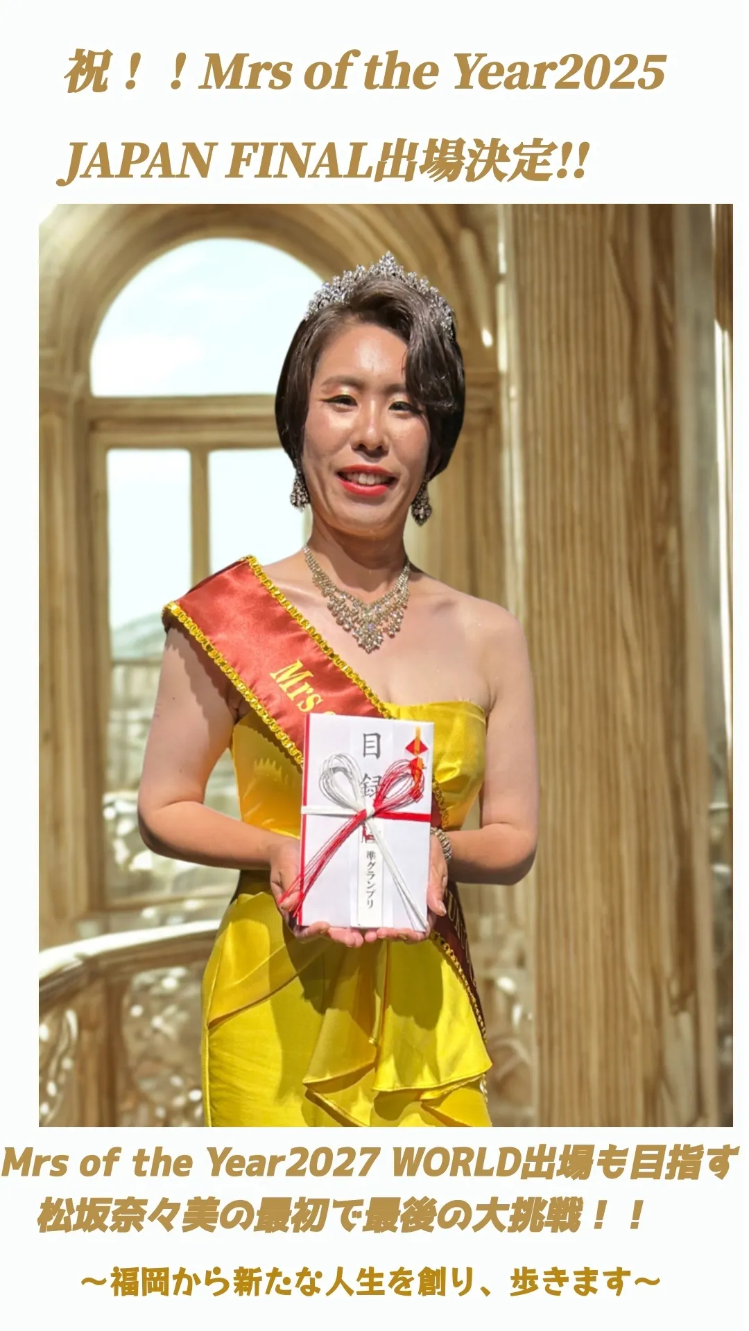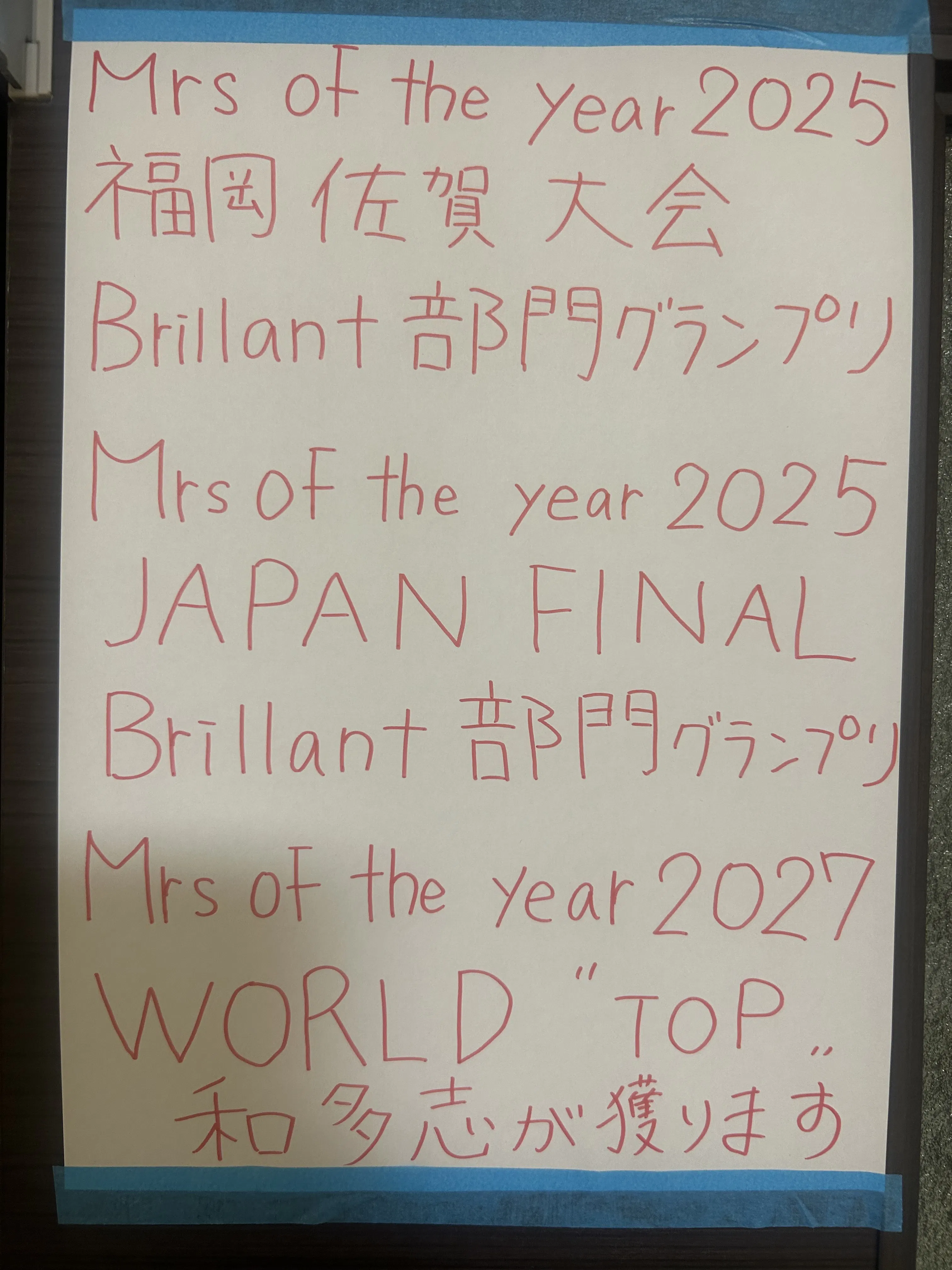 昨年のリベンジは勿論ですが、11月22日から24日にかけて開催される新宿三角広場での大会を通じて、全国各地のファイナリスト達と共に切磋琢磨し、更に自信を持ち、次なる挑戦へと歩み出す事、2027年の世界大会出場に向けた第一歩として、Mrs of the Year2025 JAPAN FINALに出場、24日にエントリーしているBrilliant部門でグランプリを獲ります‼️