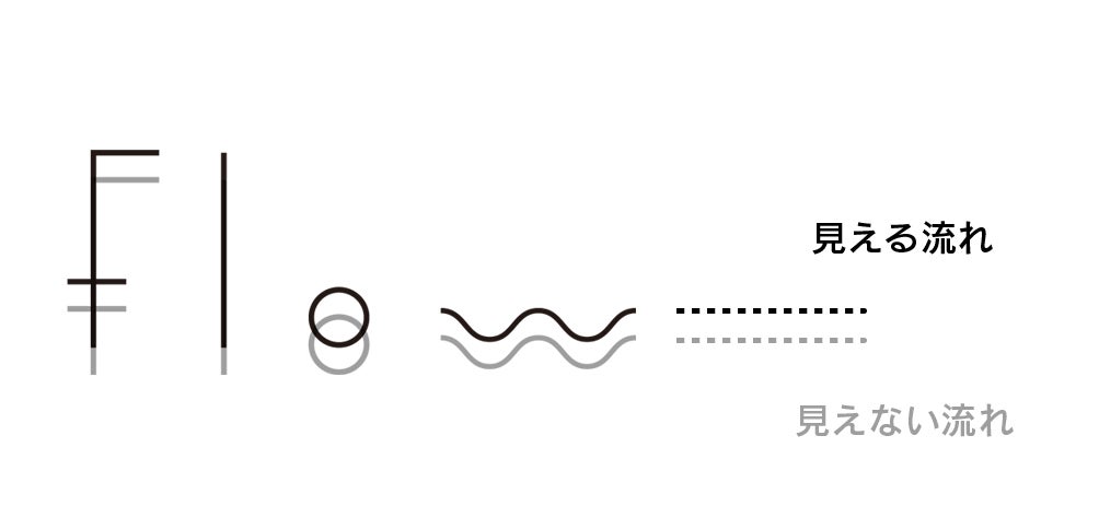 ブランド名は「流れ」を意味するフロー(Flow)が2つ。ロゴのグレー(灰色)の部分は影のように見えます。ここは「見えない流れ」をあらわしていて、FlowFlow「フローフロー」と読みます。