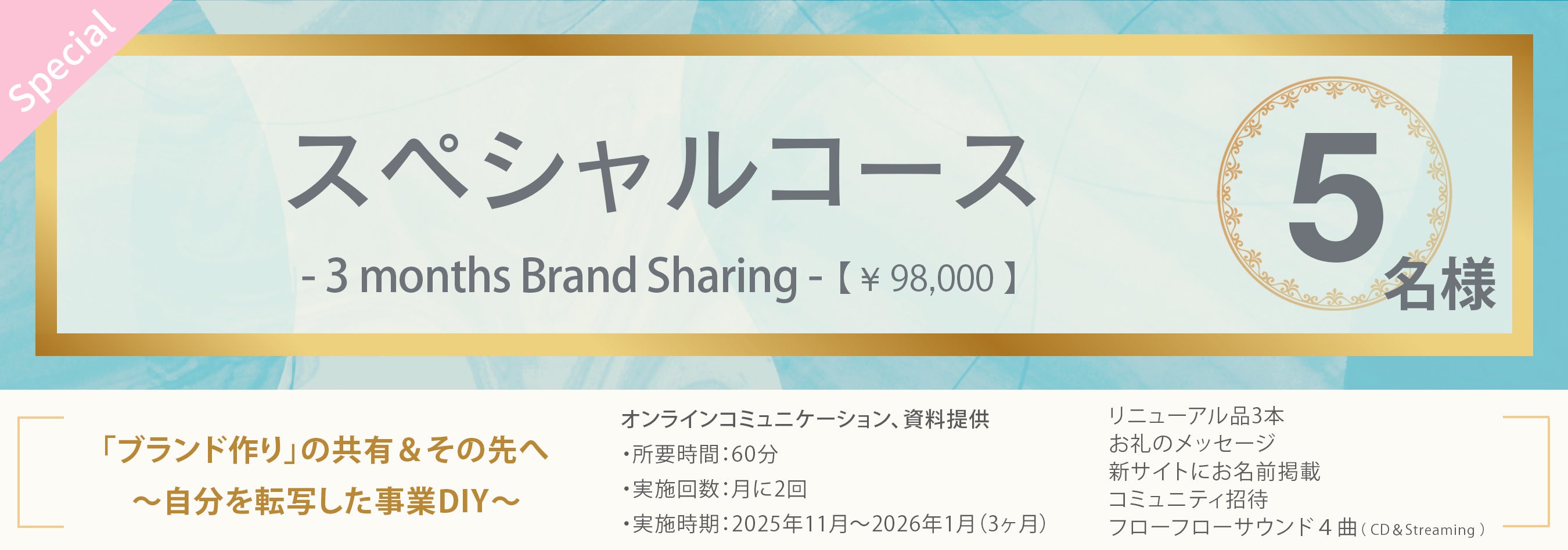 スペシャルコースに追加で3ヶ月。「リターンの共創」そんな冒険を楽しんでくれる方へのコースです。『色あせない 生き方の多様性を求めて』活動してきた20年、すこしユニークな人生になりました。かっこよさそうに書きましたが、私自身もブランドもプロセスの中。こうしたチャレンジをしながらトライ&エラーの連続。その時を共にしていきます。スペシャルコースが「ブランド」にフォーカスしているとしたら、「ワンダーコース」はより「ひと」にフォーカスしています。