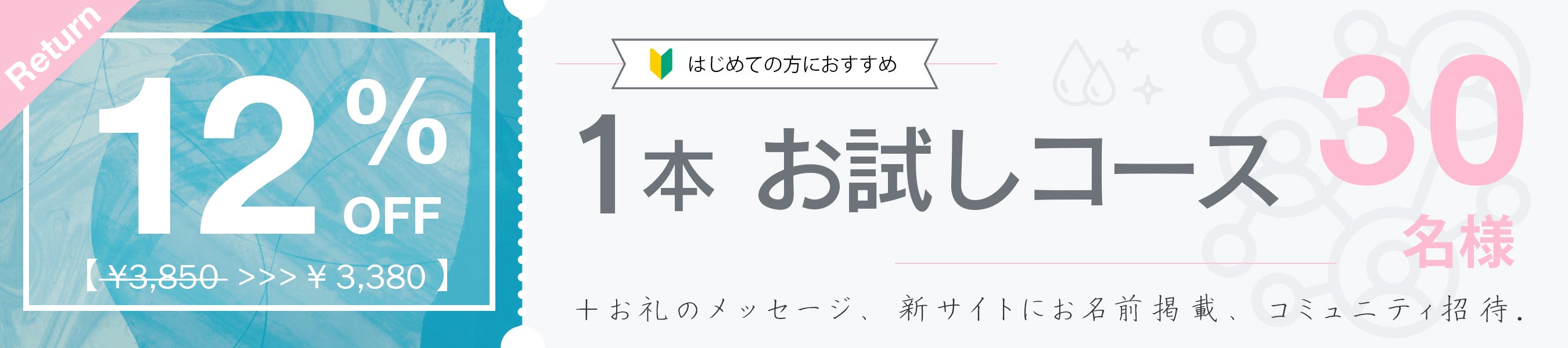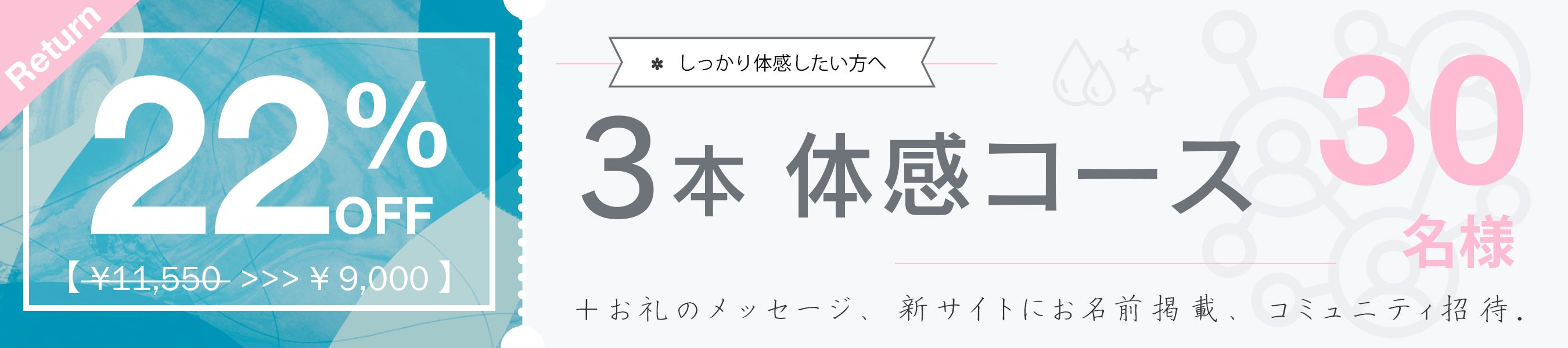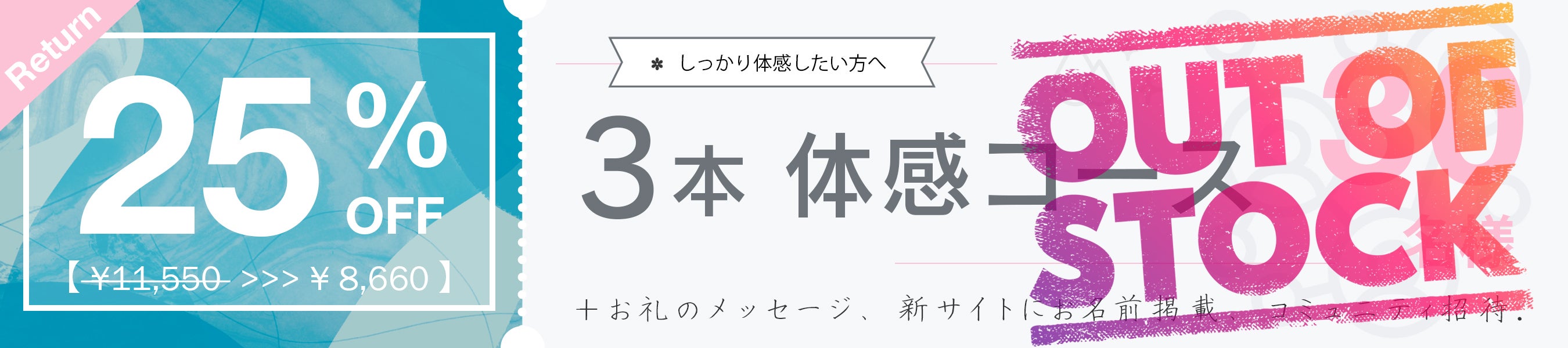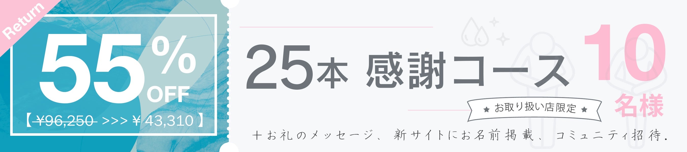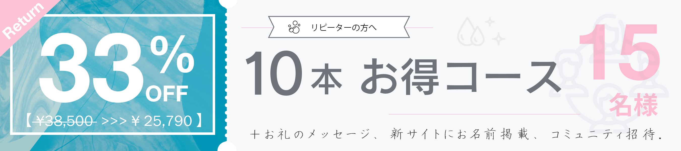 普段割引はしない商品です。こんなことでもない限りできないですが、商品の節目、頑張り時、感謝の気持ちを込めた割引率です。お得さに加え、スペシャル・ワンダーなコースもご用意しました。