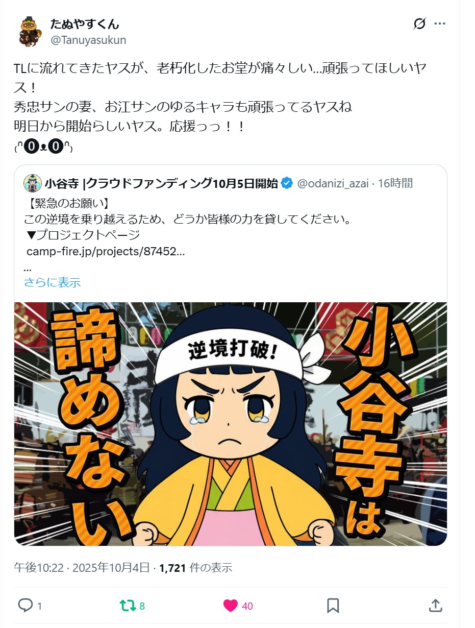 小谷寺は諦めない…皆さんの想いを糧に突き進む