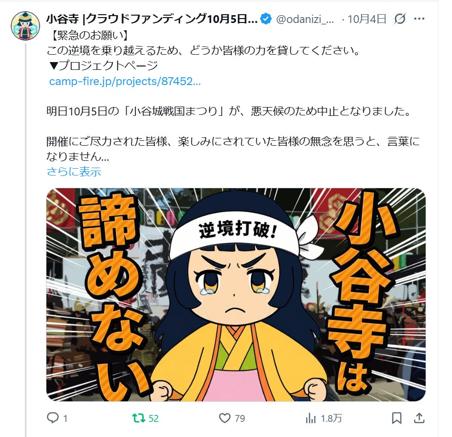 PRの大きな機会となるはずだった「小谷城戦国まつり」が、悪天候のため中止となってしまったのです。地域の皆様に直接想いを伝える機会を失い、正直、出鼻をくじかれた…と肩を落としていました。