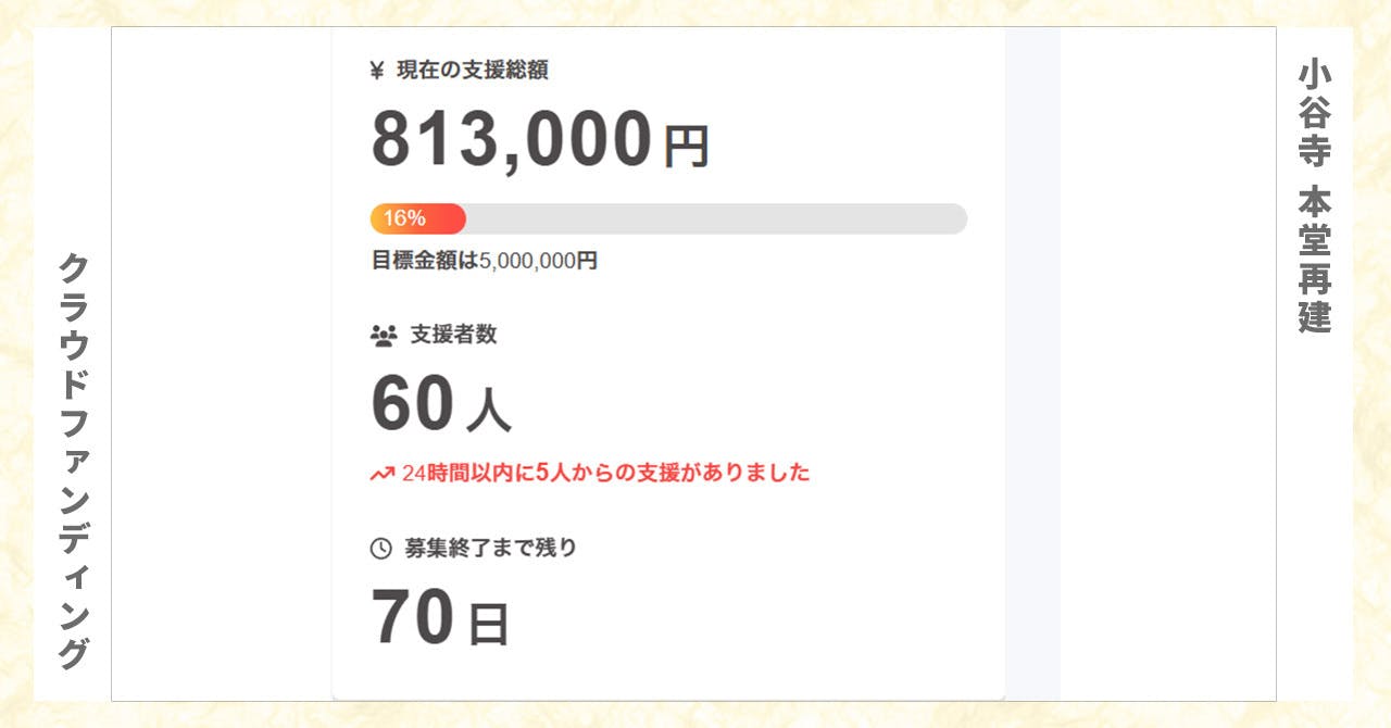 正直なところ、檀家(だんか)が一件もないこのお寺の挑戦に、これほど多くの方が応えてくださるとは思っていませんでした。 プロジェクトページのカウンターが動くたび、皆様からの応援コメントを読むたびに、メンバー一同、驚きと感謝の気持ちで胸がいっぱいになっています。
