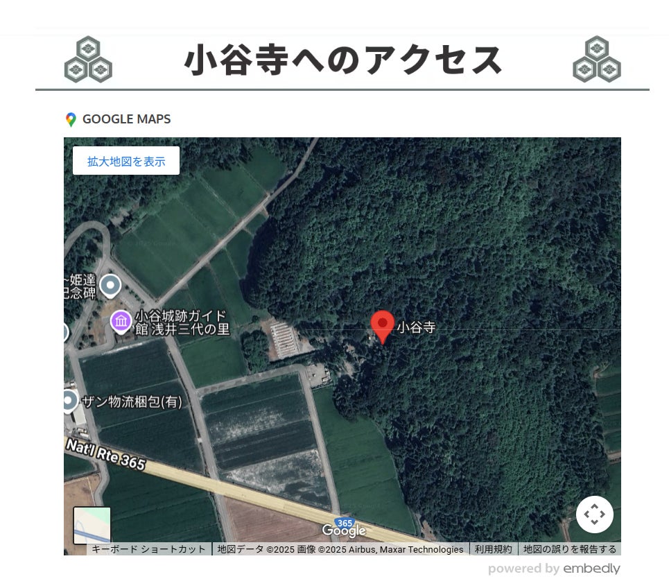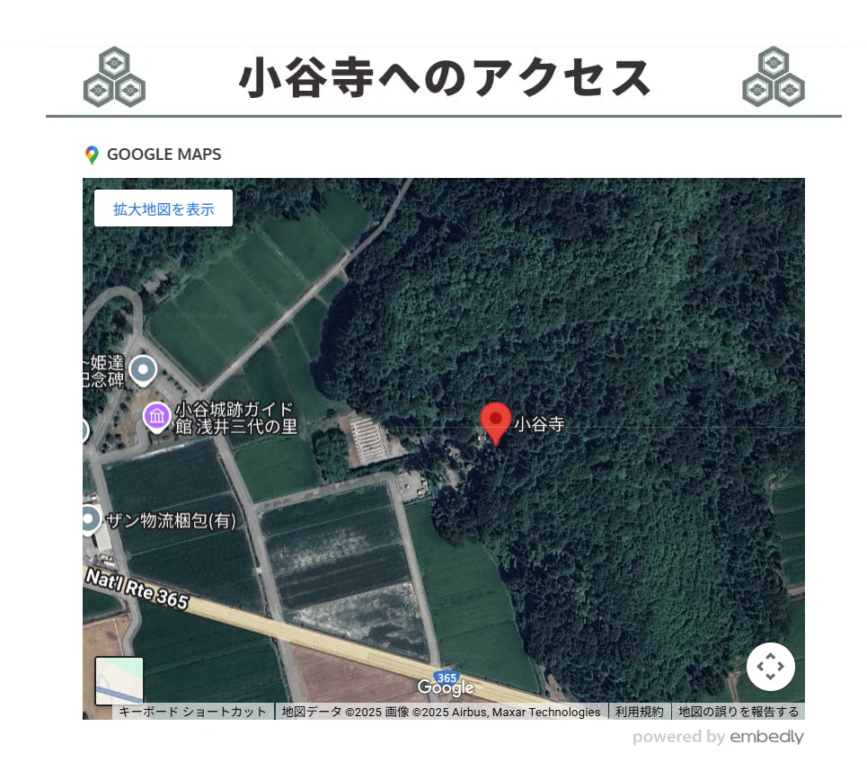 □周辺の観光情報小谷寺の背後にそびえる小谷山には、浅井長政の居城であった「小谷城跡」がございます。麓からはシャトルバスも運行しており(期間限定)、戦国時代の歴史を感じるハイキングコースとしてもお楽しみいただけます。