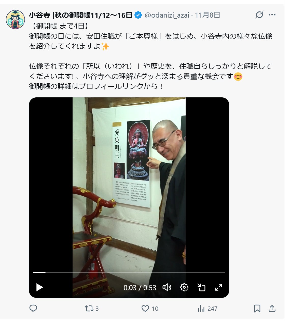 また、皆様に少しでもご開帳に興味を持っていただけるよう、SNSでも毎日御開帳をPR配信し続けています。