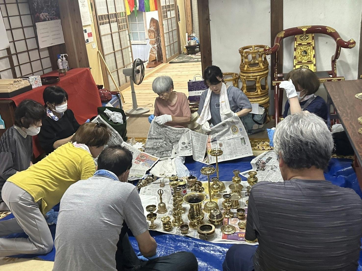 地域の方々が集まり、仏具をピカピカに磨き上げてくださいました。