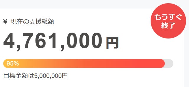 今、この活動報告を書いている私の手は、少し震えています。 先ほど管理画面を確認したところ、支援達成率が95%に到達していました!!