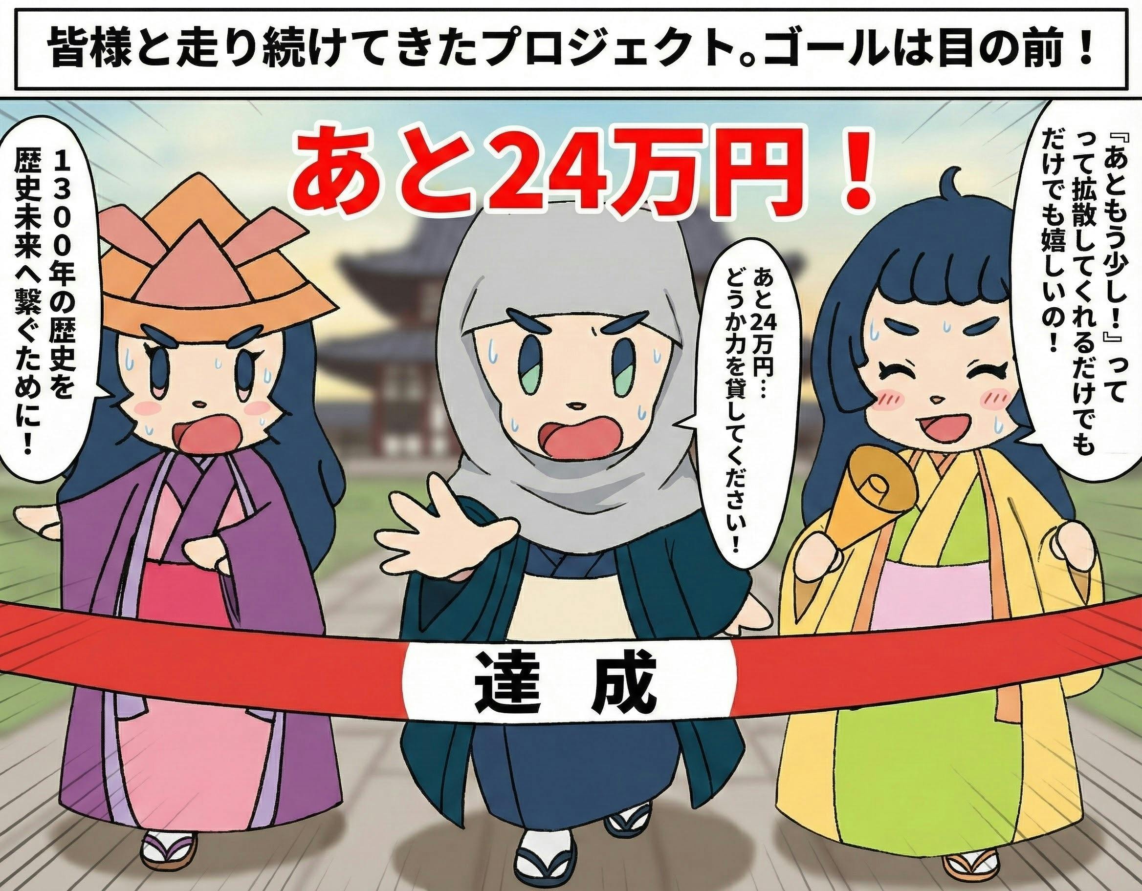 あと一息。本当にあと少しなのです。 この数ヶ月間、皆様と走り続けてきたこのプロジェクトを、何としても「達成」という形で締めくくりたい。そして、胸を張って本堂の修復に着手し、1300年の歴史を未来へ繋ぎたいのです。