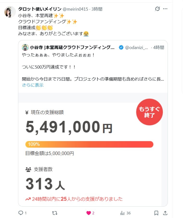 皆様の熱い想いが積み重なり、驚くべきスピードで支援の輪が広がっています。
