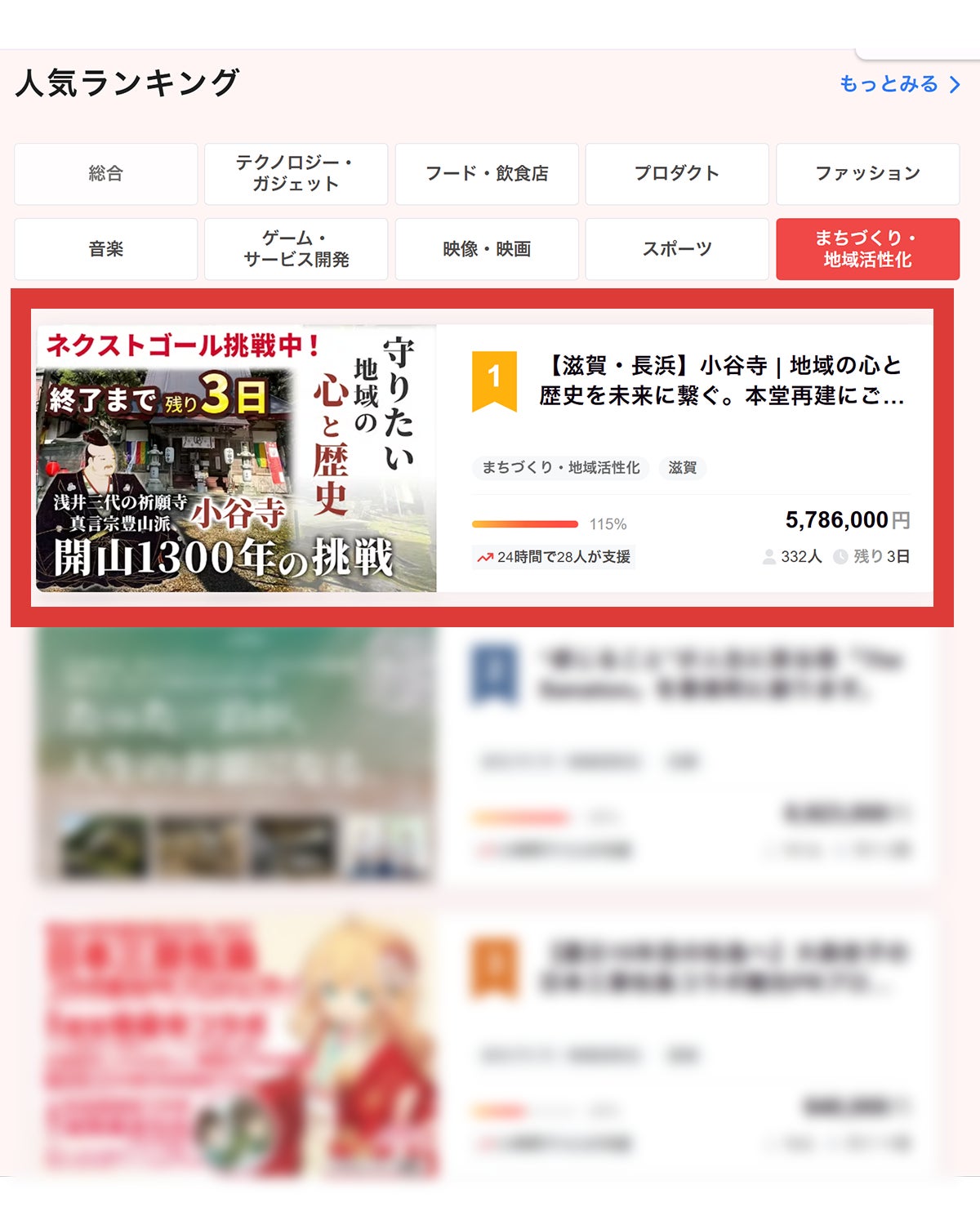 なんと、私たちのプロジェクトが「地域活性化部門」でランキング1位を獲得していたのです! さらに、数多あるプロジェクトの中で「総合ランキング」でも6位にランクインしていました。
