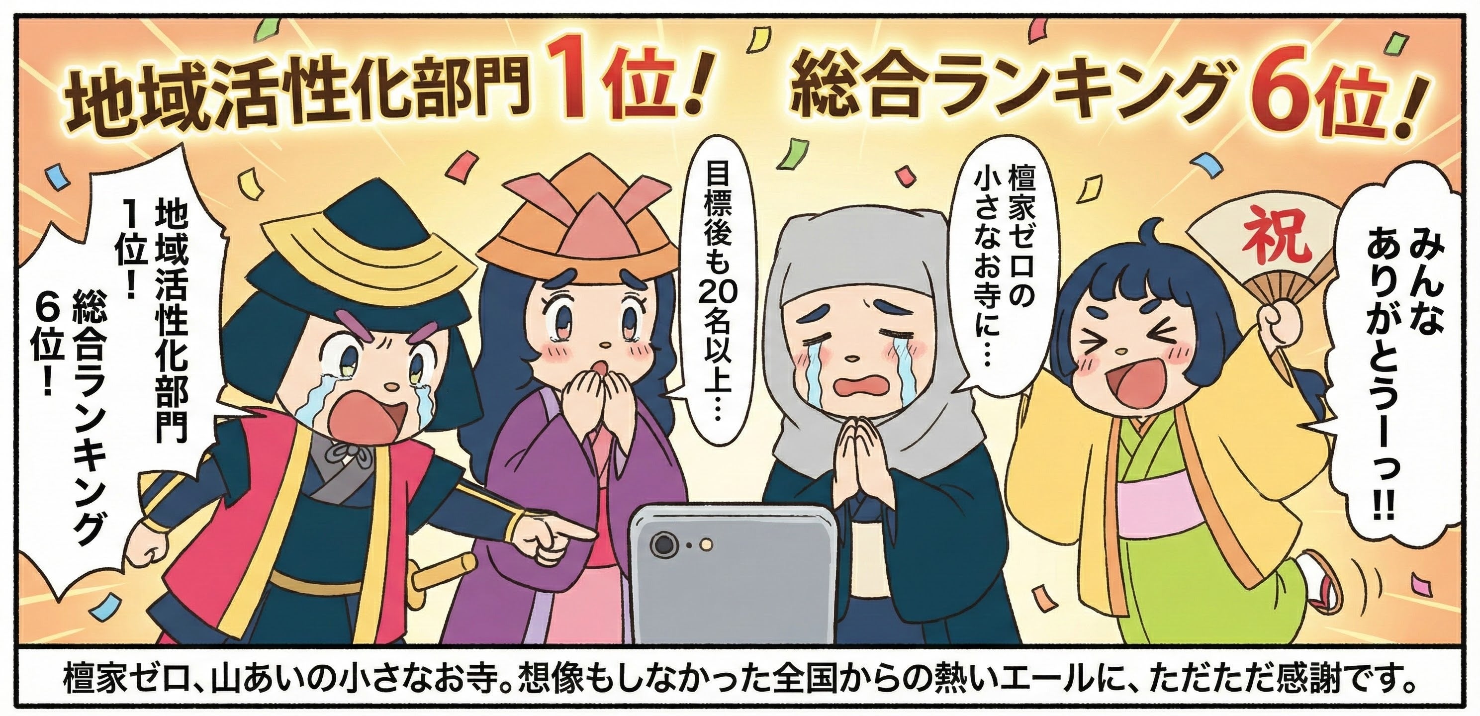 このランキング1位は、単なる数字ではありません。「小谷寺の歴史を未来へ残したい」という皆様の想いの強さが、形となって表れた証です 。浅井長政公やお市の方も、きっと空の上から驚き、喜んでくださっているに違いありません 。