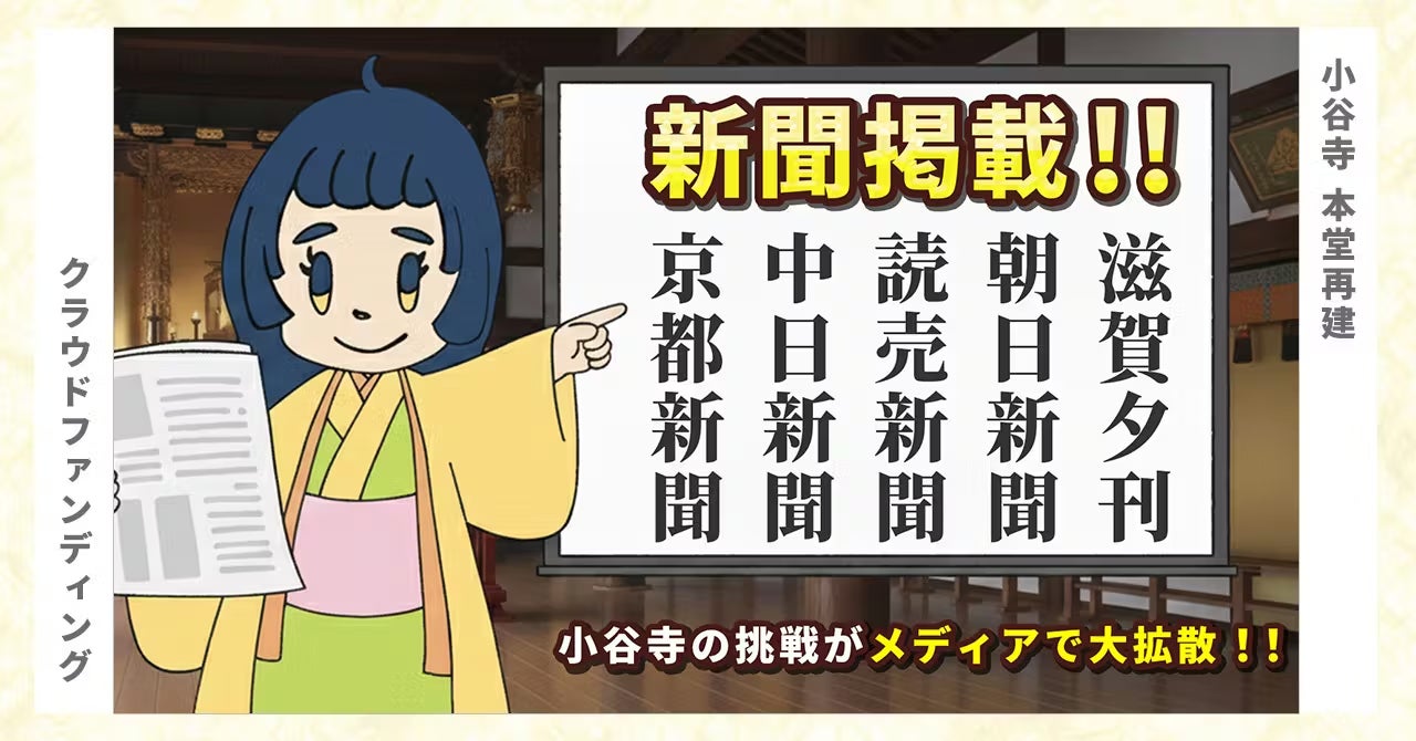 なんと合計5社もの新聞社様が、小谷寺のクラウドファンディングを取り上げてくださったのです。