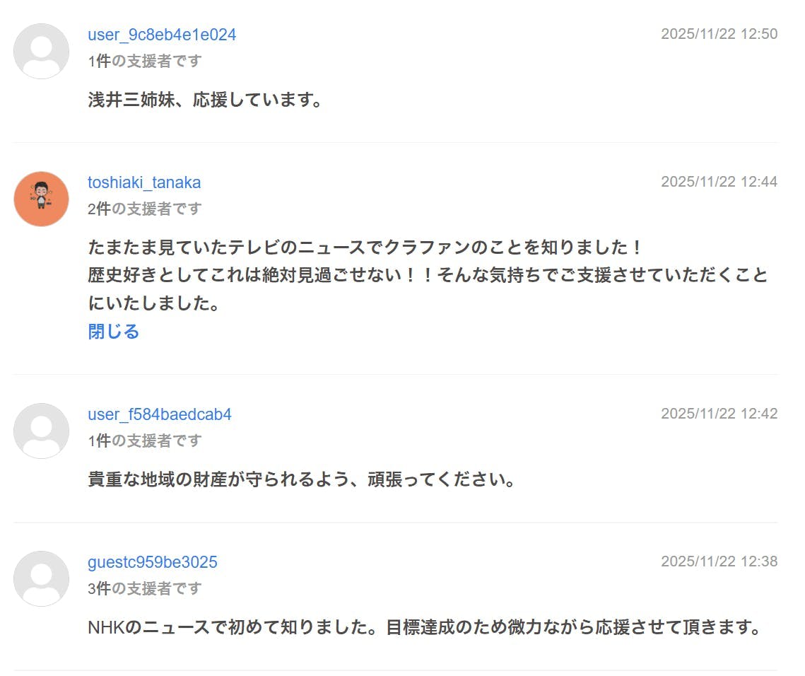 残り2週間を切った時点で、支援総額は350万円(達成率70%)。