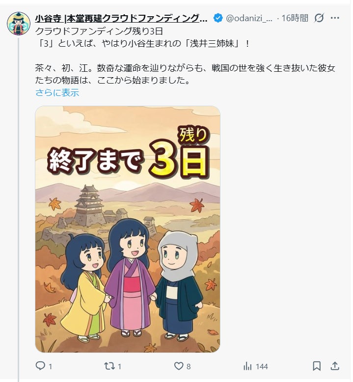 「残り3日」……「3」といえば、やはり小谷生まれの「浅井三姉妹」!