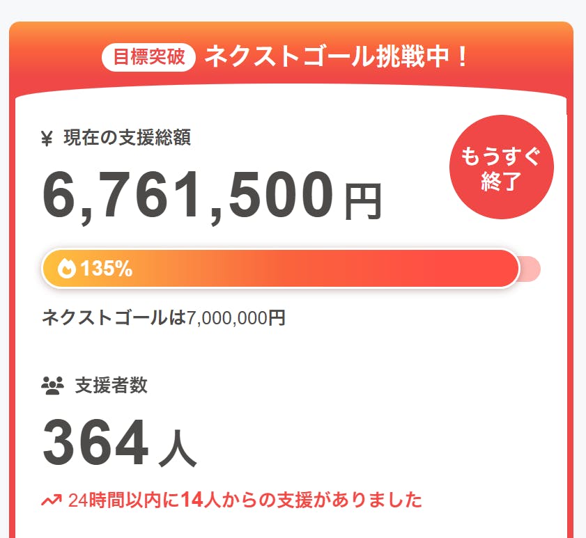 皆様のおかげで第1目標を達成した後も、その勢いは止まることなく、現在のご支援総額は676万円に到達しております。