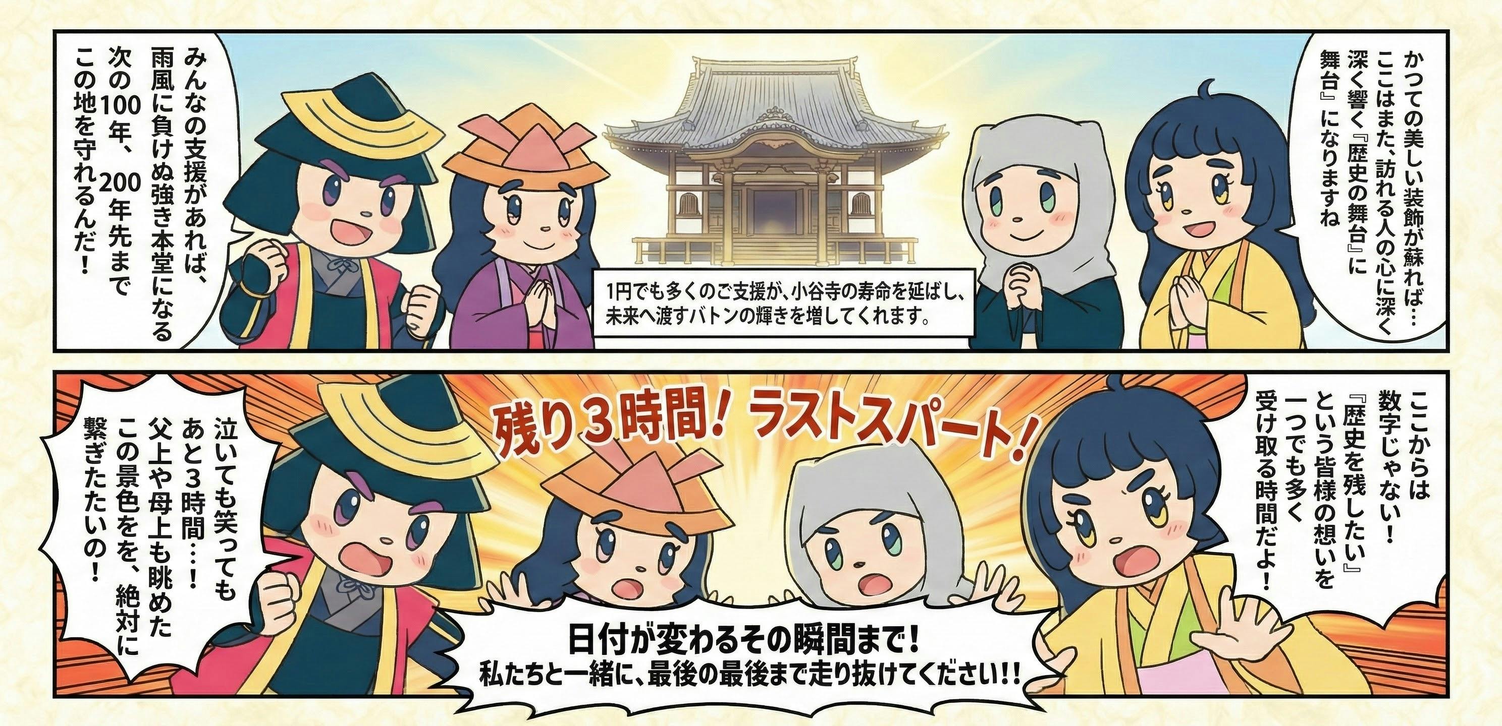 ここから先は、数字の目標ではありません。 「歴史を未来へ残したい」という皆様の想いを、一つでも多く受け取るための時間です。