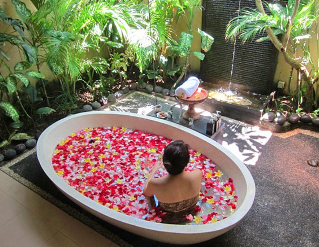 日本では見かけた事が無いのですが、こちらがフラワーバスです。ヒヨコのおもちゃを一面に浮かべたり、エンタメ要素も取り入れる予定です。(もちろん使い捨て下着着用必須となります。)