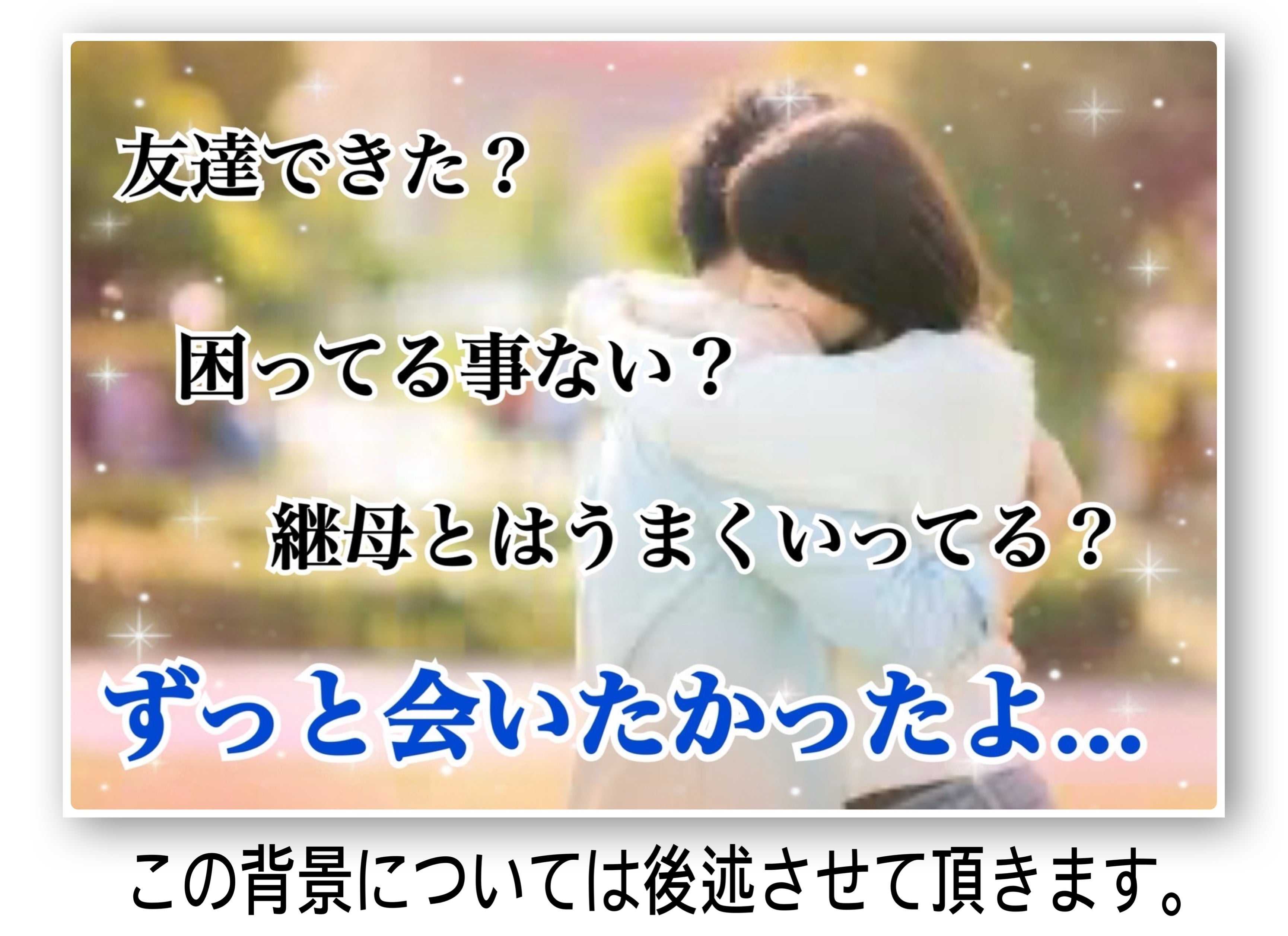 ■夫婦揃って会いに来た時の優しくて楽しい思い出しかない。父親方での生活に大きく期待を寄せている。