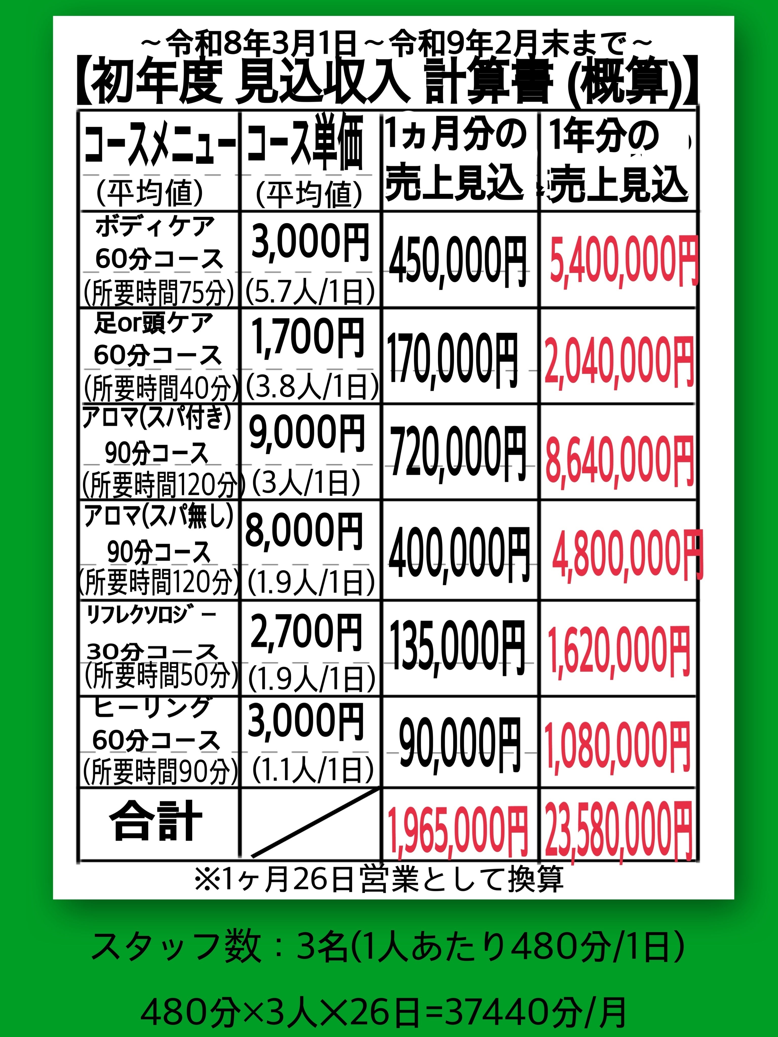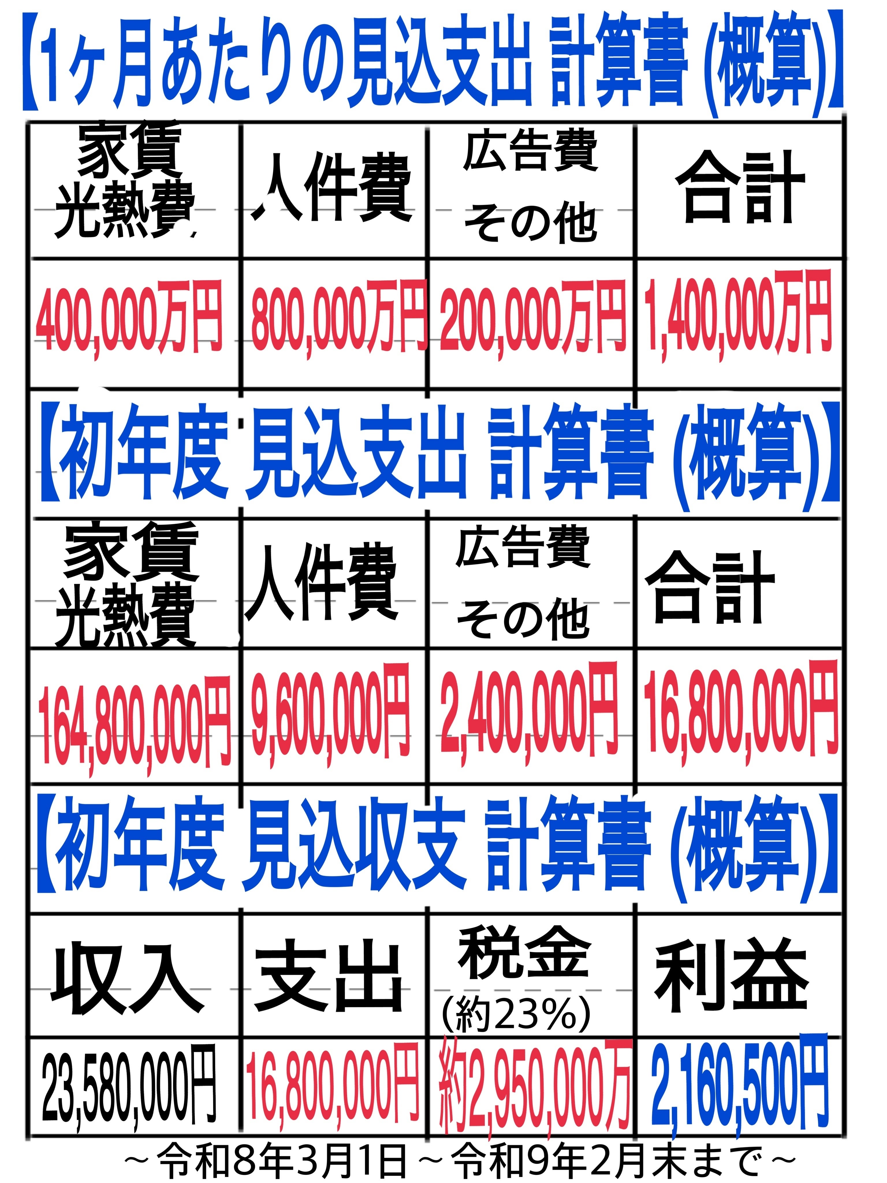 ※経営が安定するまでは半年程かかると予想しており、余剰分が必要となる事をご理解の程よろしくお願い致します。