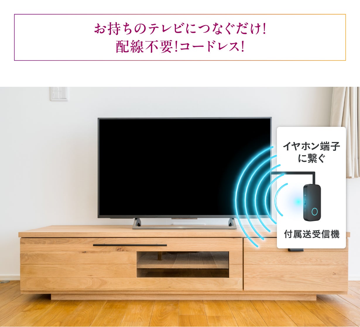 面倒な配線や工事は一切不要。届いたその日から、テレビの音があなたの手もとにクリアに届きます。