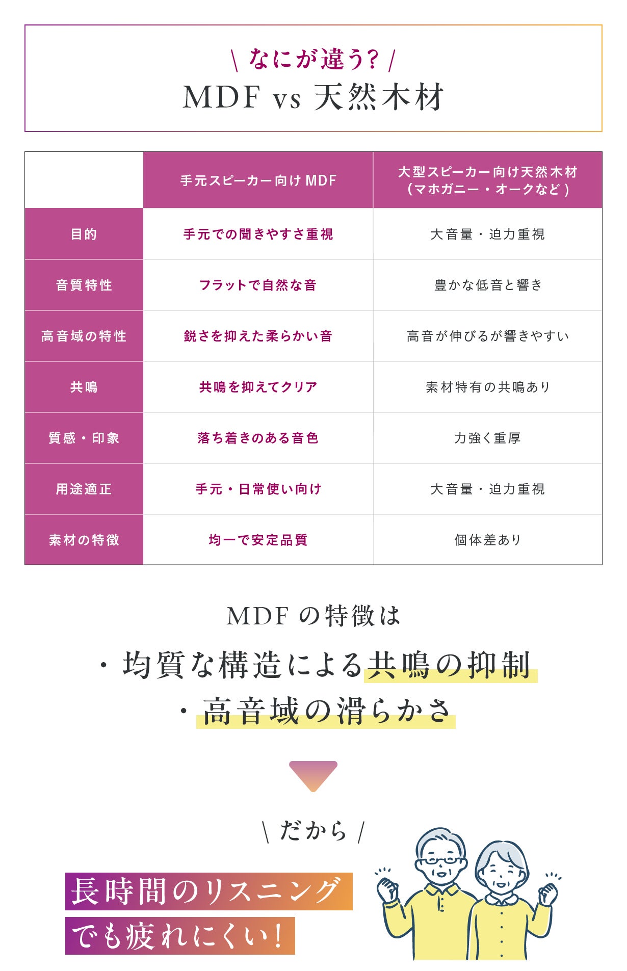そして音の決め手は、キャビネットに採用したMDF(中密度繊維版)。