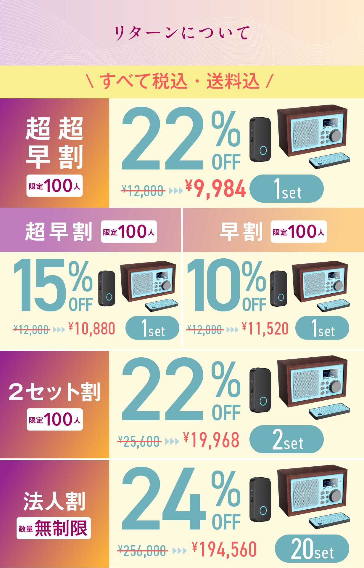 ●リターン価格:各リターン記載の通り *商品内容についてはリターン欄記載の通り