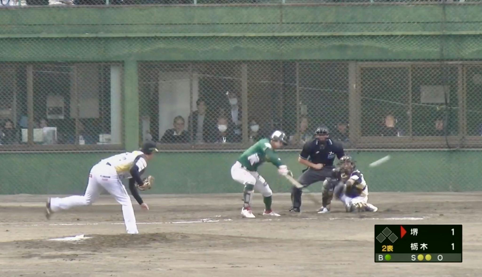 先頭の小倉(上宮太子-滋賀大)が技有りのスリーベースを放ちました!