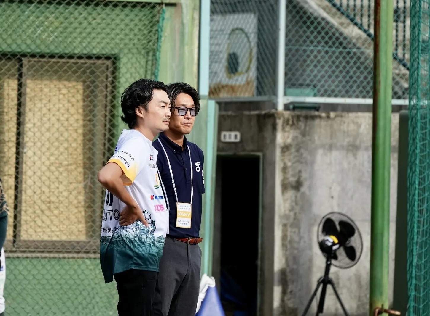 堺シュライクス創業者の松本さんと試合前のワンシーン...