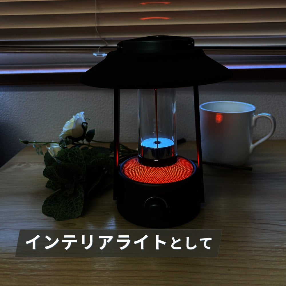一見、ストーブのように発熱しているかにも見えるアンビエントライトは優しく温かい光で周囲を照らします。照明のほか、雰囲気のいいムードライトとしても最適でベッドサイドの照明にも最適です。