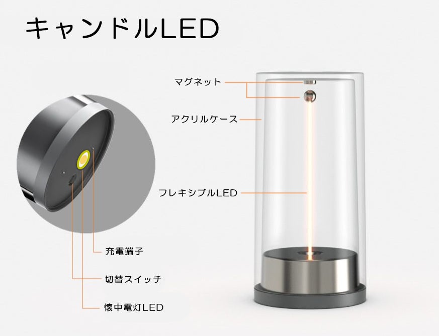 【キャンドルLED】充電時間:約45分使用時間:2時間