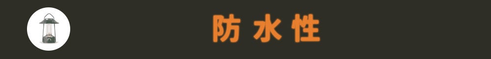 アウトドアで使用することを想定して作られているため、多少の雨や塵では浸水しないIP54仕様の防水性があります。水廻りでも使用が可能です。(IP54:あらゆる方向からの水に対して耐久性があります。水没には非対応)