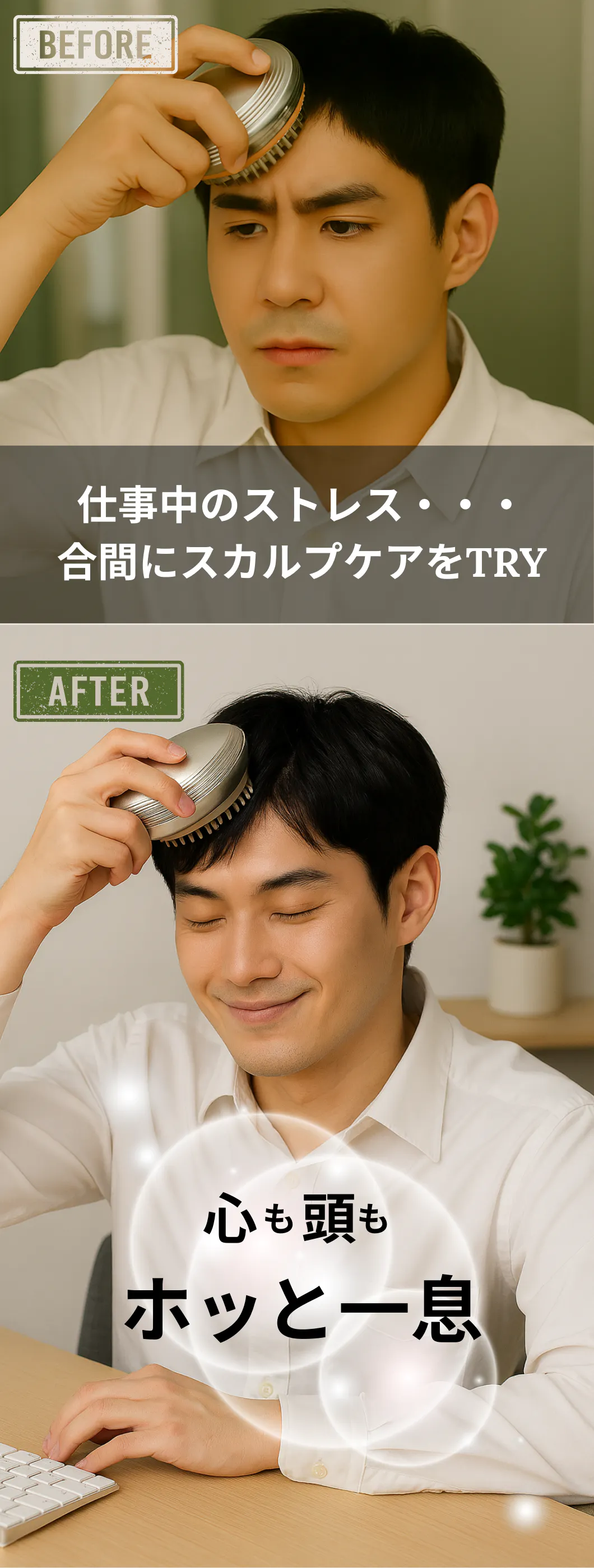 1秒100回の繊細な振動が、頭皮を心地よく刺激し、深いリラックスへ導きます。