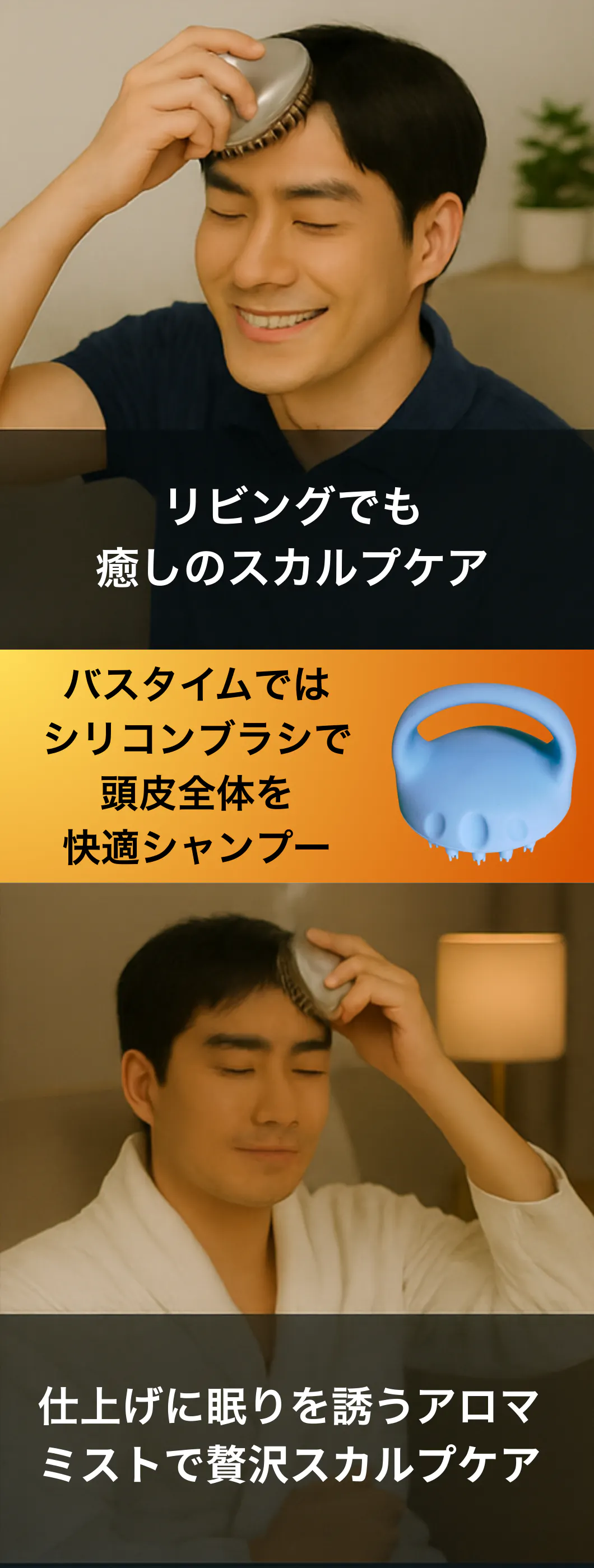 アロマミスト×振動ブラシで、心地よく頭皮ケア。