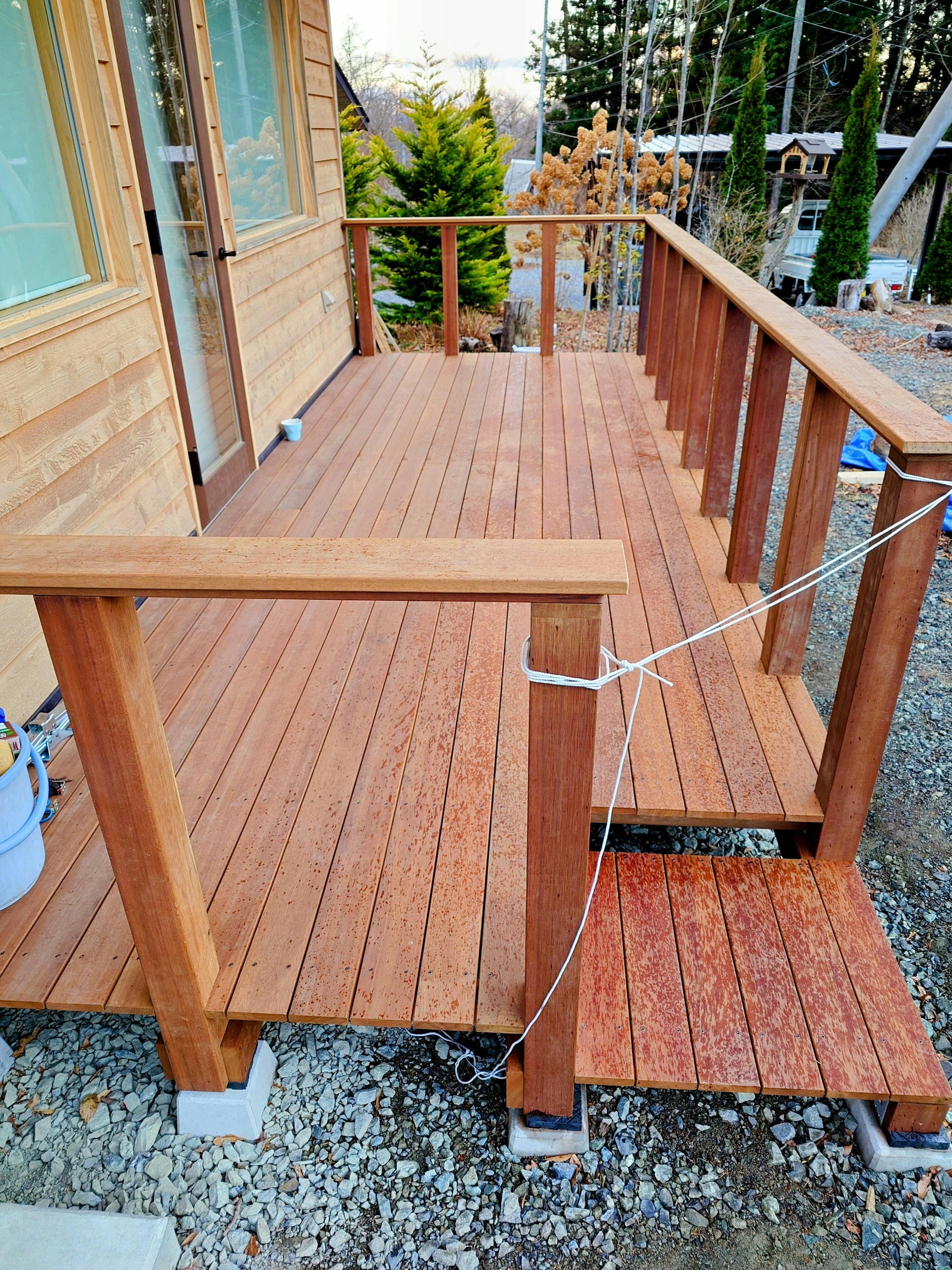 先日の日曜日に、テラスの床板をすべて張り終えました!
