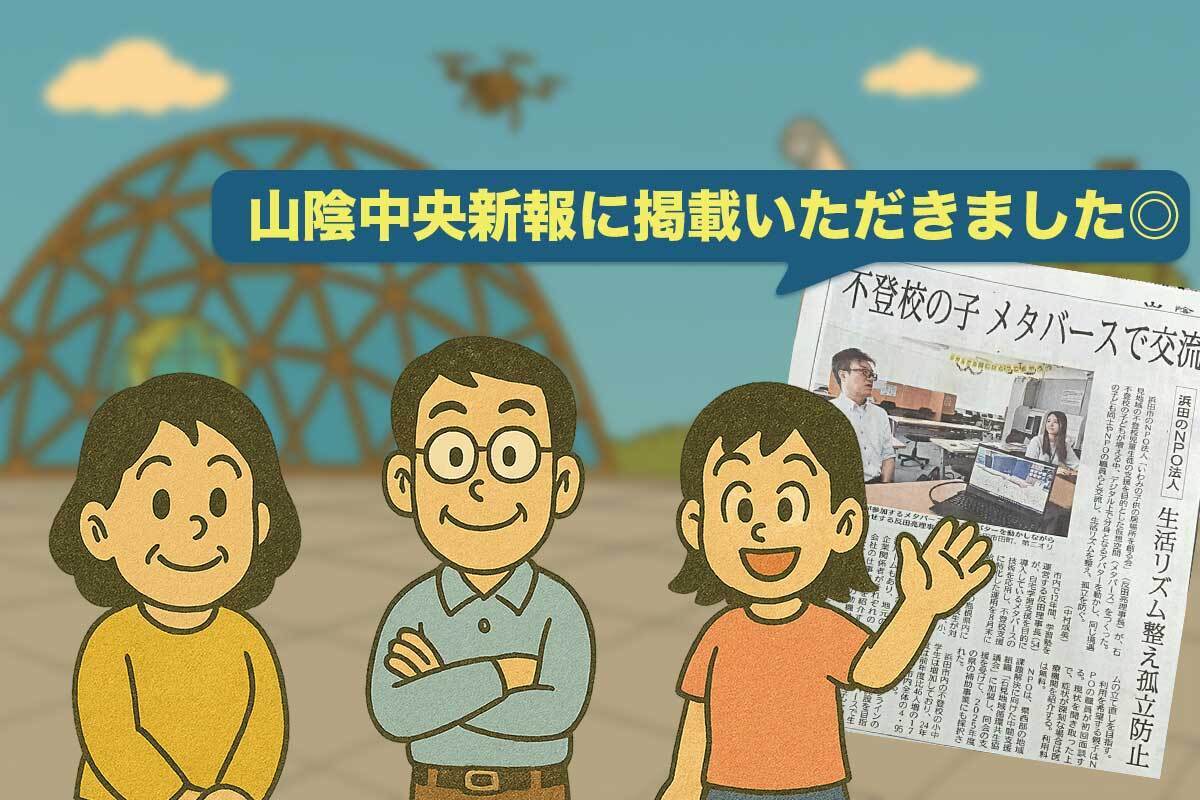 2025/10/27 09:00紙面で紹介—「メタバース×地域」で不登校支援の新しいかたち週末の山陰中央新報に、私たちの取り組みが掲載されました。記事では、メタバース空間をPC画面で実演しながら説明する反田の様子が紹介されています。顔出しに不安がある子もアバターで参加でき、まずは“来てみる”ことから始まるオンラインの居場所について触れていただきました。取材の皆さま、そして日頃から応援してくださる皆さま、本当にありがとうございます。私たちのめざす場所—「治す」でも「評価する」でもない“あいだ”私たちがつくりたいのは、肩の力を抜いて“来てみる”ことから始まる、第三のよりどころです。1)メタバース活用:アバター参加で心理的ハードルを下げる2)生活リズムの回復:決まった時間に集う“習慣”を支える3)少人数の見守り体制:安全とプライバシーに配慮した運営4)島根・石見の伴走:オンラインで距離を縮め、必要時は顔の見える関係で支える新聞でも、「孤立の防止」「生活リズムを整える」という視点を丁寧にすくい上げていただきました。ここで過ごした時間が、学校復帰でも、通信制・高認・進学でも、あるいは“いまの自分を保つ”静かな足場でも、その子にとっての前進であれば十分です。次の一歩—初めての方へ安心の導線を今後は、・フリースクールと無料塾(2026年度 開校予定)・保護者向けミニ相談(カウンセリング/進路相談の機会)を順番に整えていきます。はじめの一歩を、できるだけ軽く。反田がPCでメタバース空間をシミュレーションしながら説明する様子。→ プロジェクトTOP→ 活動報告#2|新リターン「支援者銘板」読んで、シェアして、支援してくださる一つひとつが、この“あいだ”の場を確かに育ててくれています。いつもありがとうございます。 もっと見る