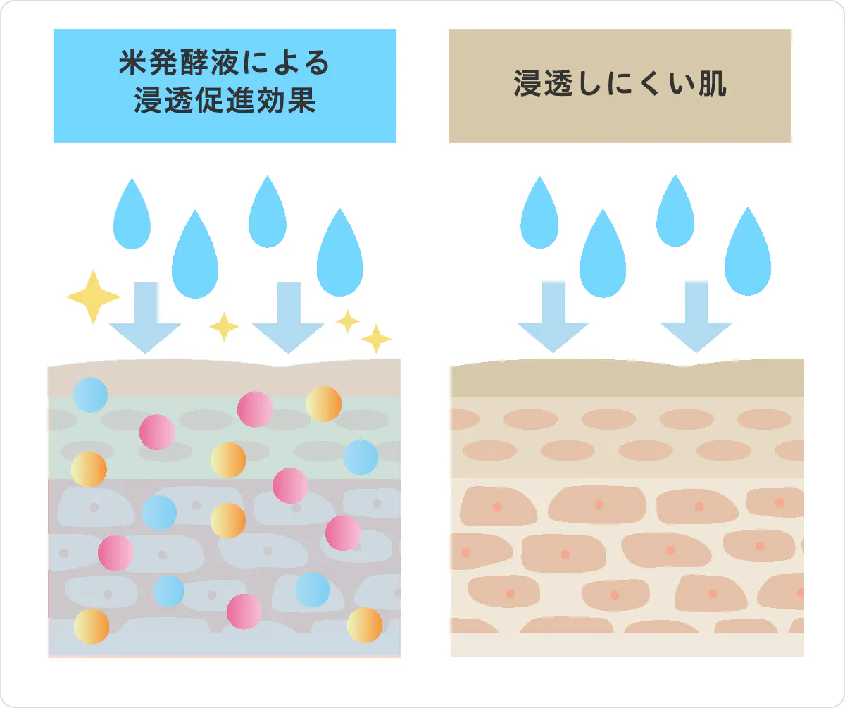 紫外線で機能が低下した肌にも、美容成分をしっかりと行きわたらせ、長時間の保護を達成するために、秋田のお米と、発酵の力を取り入れました。