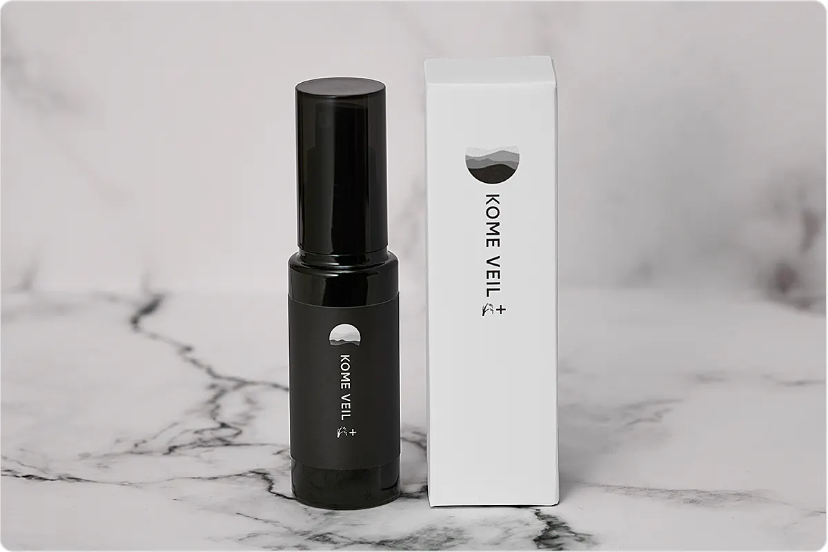 KOME VEIL ➕は、米ぬか・GABA・フキ芽などの自然の恵みで、「取り戻す」より「寄り添う」ケアを届けます。