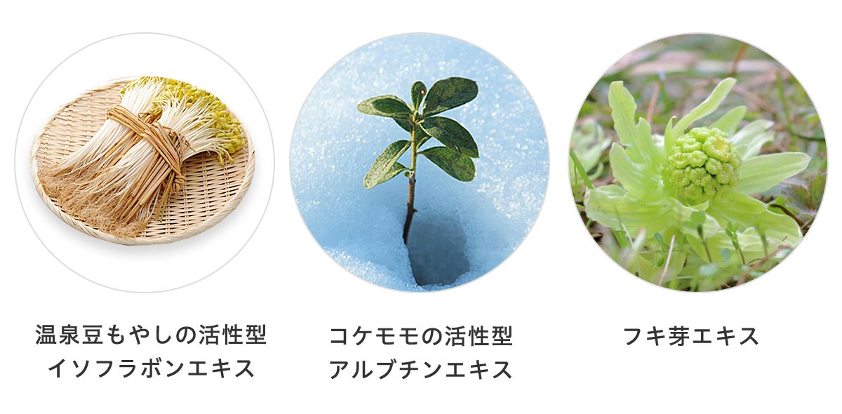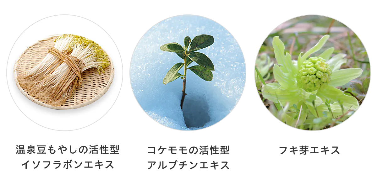 秋田県花である蕗のエキス。外的ストレスから肌を守り、明るさと透明感のある印象へ。
