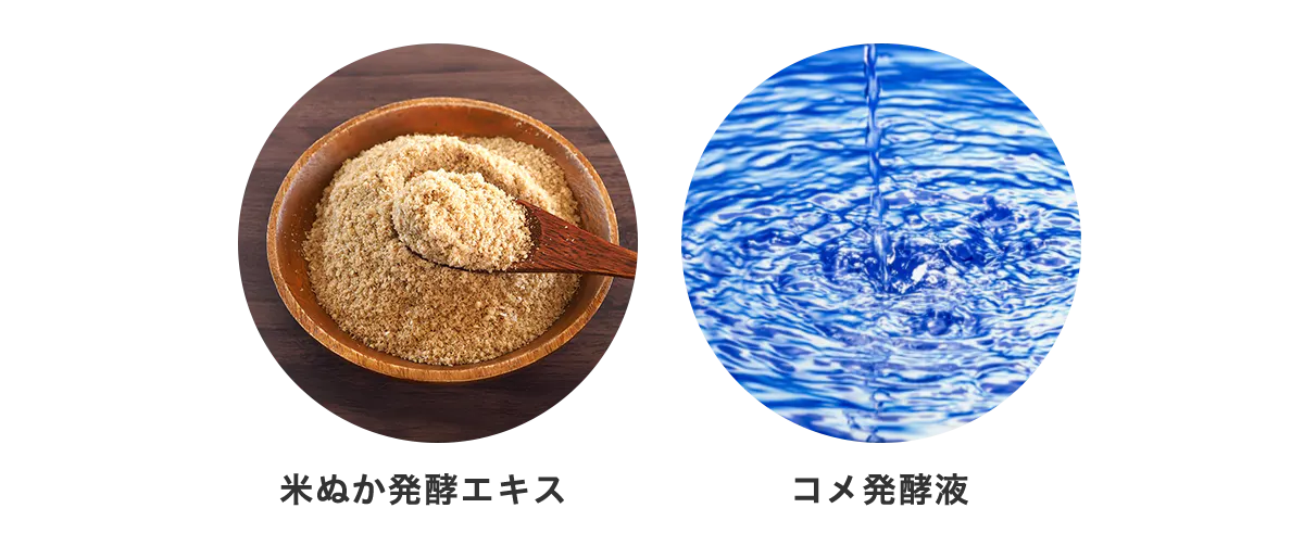 ・米ぬか発酵エキス:大正から続く秋田の酒蔵の米ぬかを乳酸菌で発酵させたエキス。