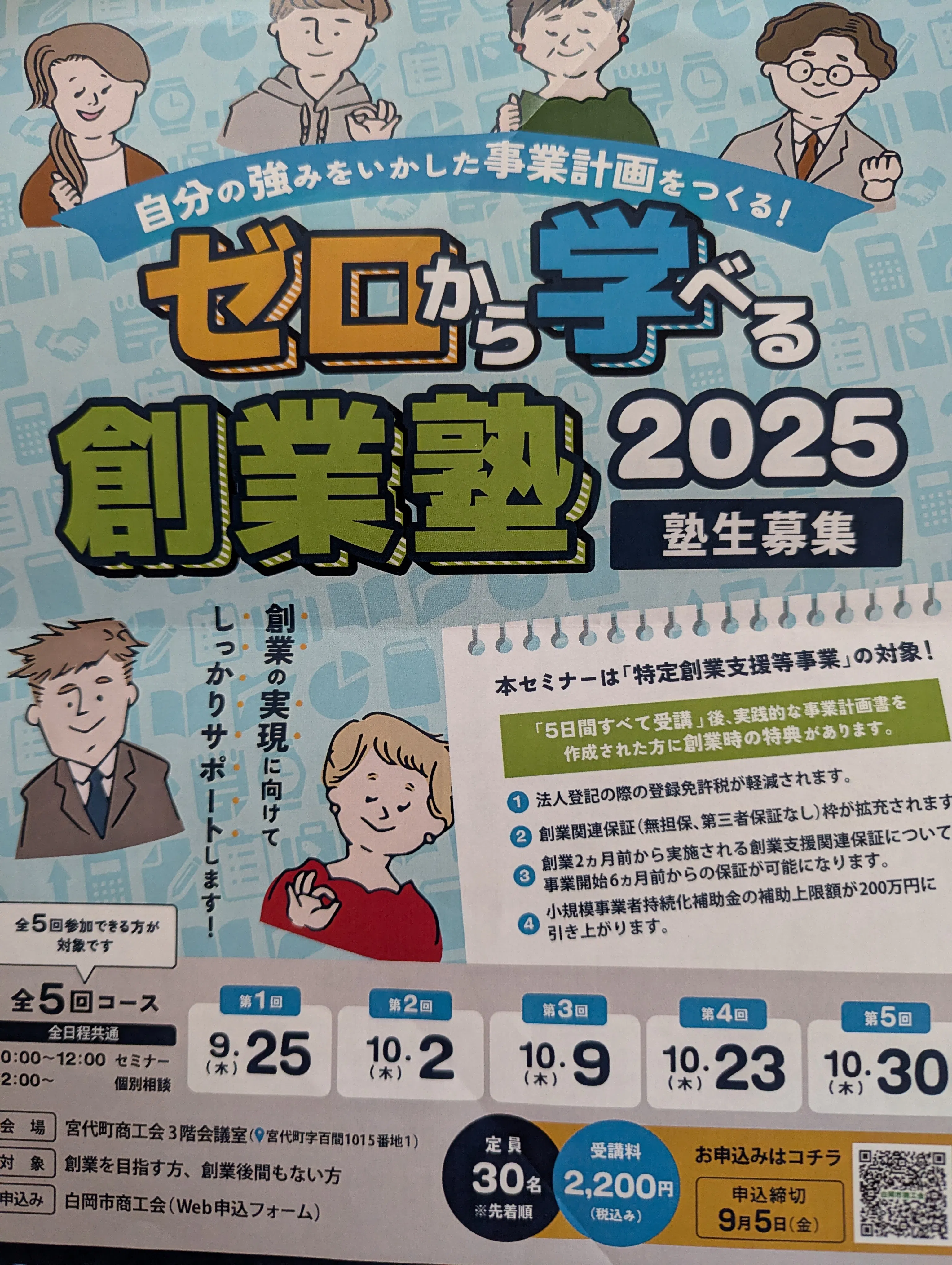 2025/09/25 09:30創業塾2025。いよいよ本日からスタートします。蓮田市、久喜市、幸手市、白岡市、杉戸町、宮代町の共同開催です。今日から10月30日まで週1での開催になります。起業に向けてしっかり枠組みを煮詰めて頑張ります。これからも応援宜しくお願い致します。 もっと見る